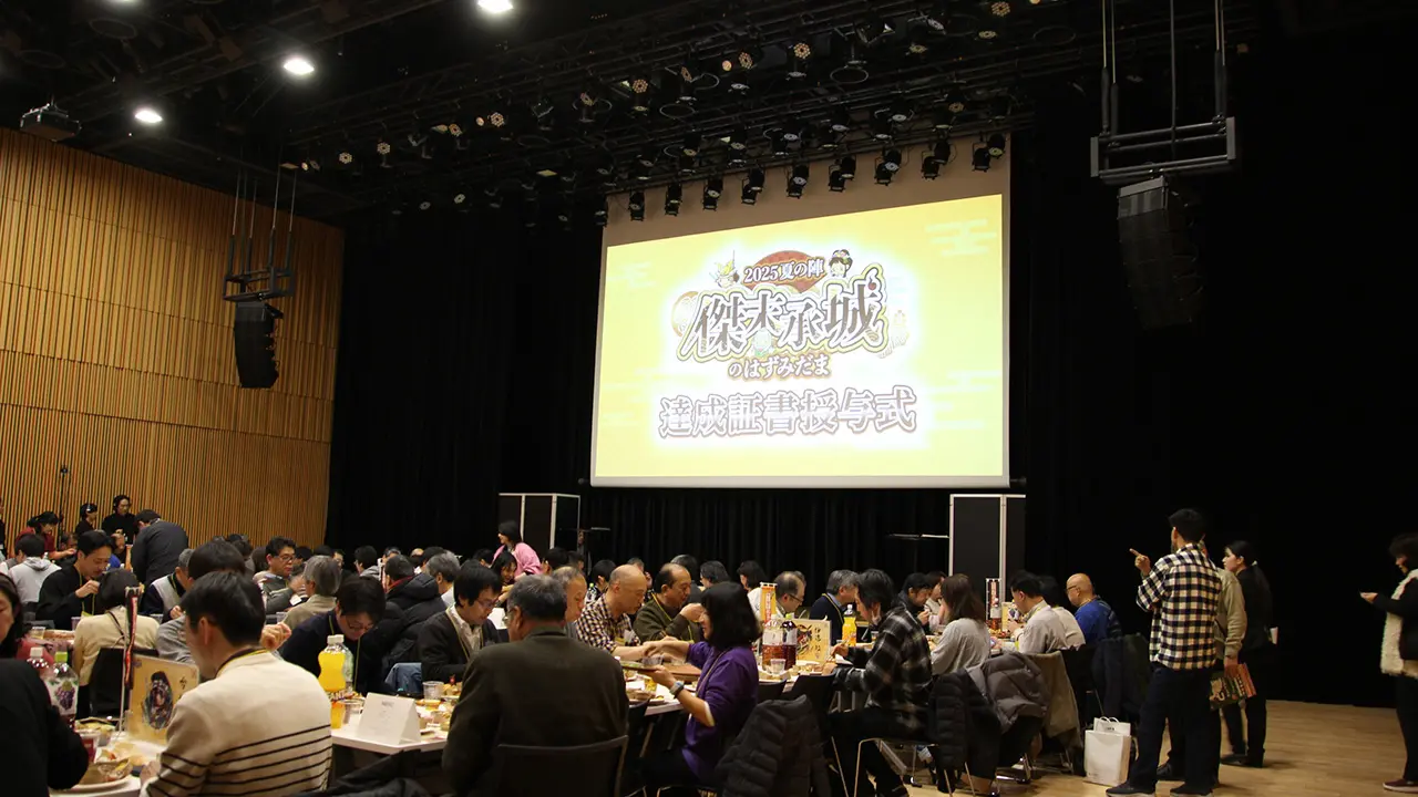 モバイルアプリ『ケータイ国盗り合戦』内で毎年行われる全国100スポットを巡る夏の陣。その夏の陣達成者を祝した達成証書授与式の企画・制作・運営を担当。非日常感のある会場の特性を最大限に生かしながら授与式の演出を行いました。10年以上、授与式の制作に関わらせていただいております。参加者の皆様が交流を楽しんでいただけるよう趣向を凝らして制作しています。